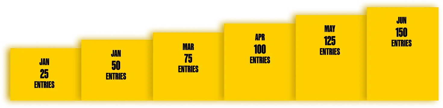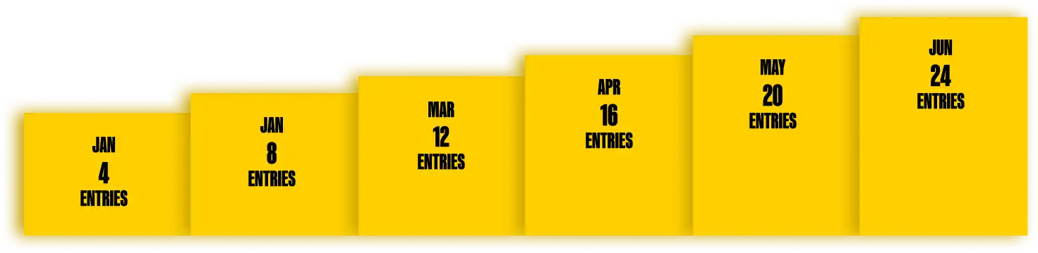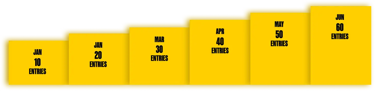 5 accumulating entries per month